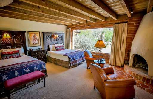 Tennis and basketball courts sit among the towering saguaro and ocotillo as well as two swimming pools and 69 choices of comfortable and inviting accommodations featuring traditional adobe walls and Santa Fe-style architecture. And Western wear isn’t just in vogue for cowboys and cowgirls. The accommodations are stylishly appointed in Western wear of their own, featuring textiles, art and more that combine the spirit of the Old West and modern amenities.