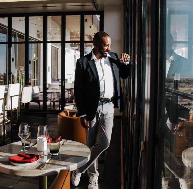 Jamal Allen models a style perfect for an Arizona autumn on the outdoor terrace of Prime, A Shula’s Steak House. Allen is wearing ASOS Design Johnny Collar Cotton Polo, Rodd & Gunn Gunn 5 Pocket Pants and Nordstrom Jace Sneaker. FEATURED 10 A Sartorial Saga Crafting a narrative through clothing 18 Best Face Forward Expert tips on how to put your best face forward this fall 22 Feast for the Eyes Masterfully plated dishes that taste as good as they look 26 Picture Perfect Insider advice on preparing for your next family photo shoot 26 6