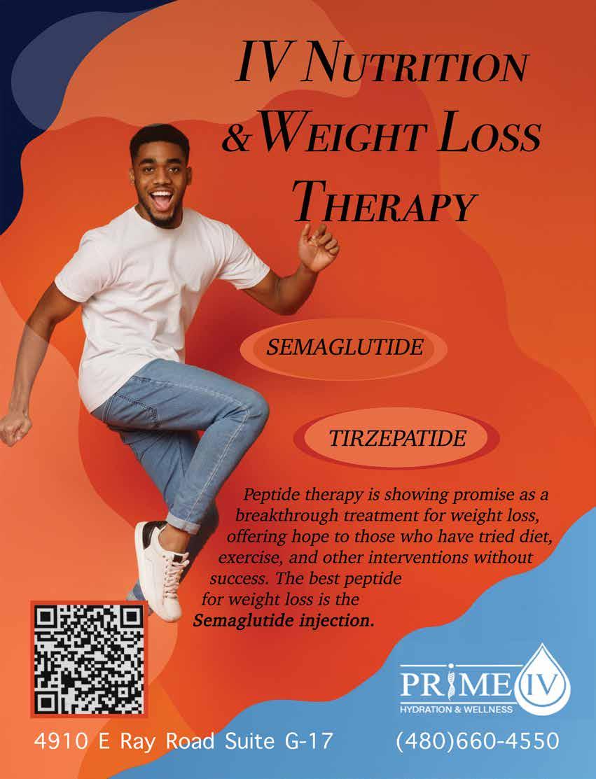 (480) 877-1486 info@storiescounseling com www StoriesCounseling com 4864 E. Baseline Rd, Ste 106, Mesa, AZ 85206 1631 E. Guadalupe Rd, Ste 102, Tempe, AZ 85283 @storiescounseling WE'LL HELP GUIDE WE'LL HELP GUIDE YOUR STORY YOUR STORY Every Story Matters P r e m i u m M a s s a g e Flat Rate Gratuity Included No Hidden Fees Upgrades at No Extra Cost $ 1 3 0 $ 9 0 6 0 M i n u t e Premium Massage $40 OFF FIRST MASSAGE! LIFESTYLEPERFORMANCETRAINING.COM 4804630364 // 7890 S HARDY DR., #115, TEMPE, ARIZONA Couples train together and save up to 50% Book a complementary Welcome Session 24