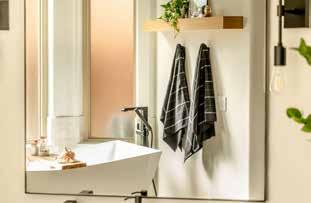 reach, including wall hooks directly behind the tub that easily hold large towels.