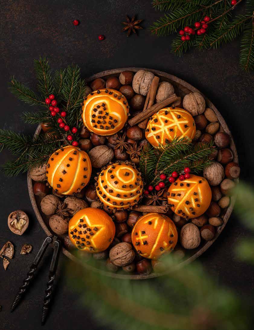 Radiate an old-fashioned holiday with a bowl of clove-studded oranges. These bright decorations are pretty, and smell just like how holidays should smell. Pomanders are easy to make by pricking holes in citrus rind to insert cloves. Year after year, this tradition will deliver that always-at-home Christmas aroma, no matter the location.