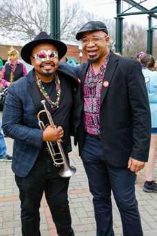 15: All tuned up and ready to march! 16: Trumpeter Alphonso Horne and tambourine player Norman Edwards Jr. ready to lead the parade. 17: Reunited with old friends at Aiken Spring Steeplechase. 18: David Bryan and Sheri Osburn (Certapro Painters) enjoying a libation railside at Steeplechase. 19: Rebecca Williams and Gayle Bryan (Aiken City Lifestyle) with Kate VanCantfort (Southerlee Farms). 20: Spring Steeplechase is best enjoyed with family and friends! 21: Delany Tavenner and Samantha Parker looking fashionable at Spring Steeplechase.