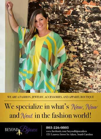 We gathered some Aiken boutique owners for a “Boss Lady” photo shoot, and who better to have front and center than Bobby Ard, otherwise known as #bossbobby! Bobby, a former nurse, is the owner of Beyond Bijoux on Laurens Street. Her passion for fashion started as a child. She wanted to be a costume designer since she was a little girl, and nine years ago in collaboration with her sister who owns Beyond Bijoux in New Jersey, Bobby opened Beyond Bijoux Aiken. Bobby noted, “I fell so much in love with helping ladies dress and accessorize their outfits and making them feel confident and beautiful! We started with around 800 square feet in 2014, and because of all the fantastic support from Aiken, we have grown to a whopping 5,300 square feet. It’s been an amazing ride thus far, and I am so grateful for the opportunity to serve the great people of Aiken!”