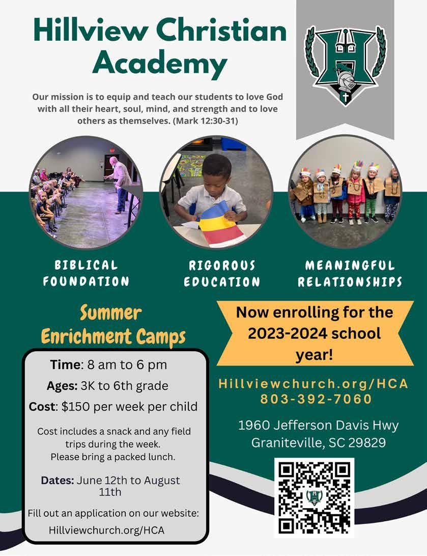 Whether you are seeking solitude, a moment to reconnect to nature, educational information, or a way to just get some energy out, a visit to Hitchcock Woods will do it all! Aiken is so fortunate to have this easy-to-access urban oasis, so be sure to explore the woods this summer. If you happen to see our woodsman, Bennett Tucker, be sure to say hello and bend his ear; he has a wealth of knowledge and his passion for the woods and conservation is abundant. Maybe even try to spot the infamous world-record holder Longleaf Pine, Champ! CONTINUED >