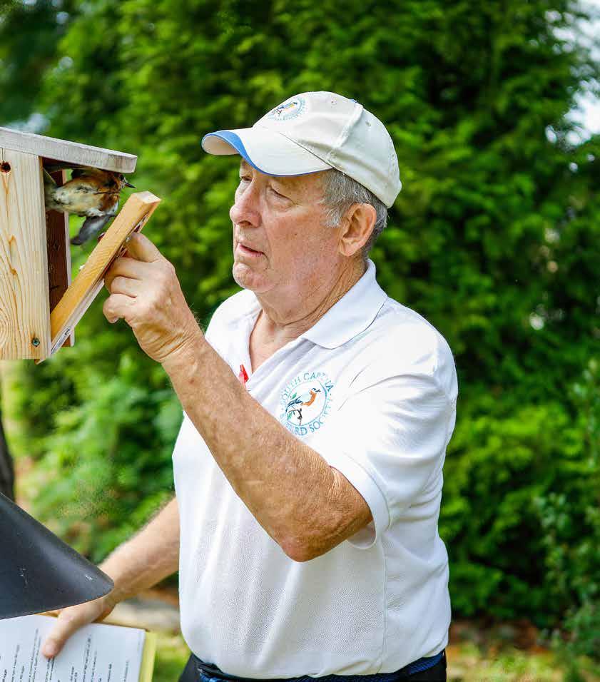 Mike’s fascination with bluebirds began shortly after he and his wife retired to Aiken. Not long after, Jim Burke, another Woodside resident, and some friends formed the South Carolina Bluebird Society. Mike was invited to a meeting and, as a result, started monitoring about three nest boxes around town. According to him, just like every other monitor that does it, he was hooked once he saw the babies. In 2017, Jim moved to North Carolina, and Mike succeeded him as president.