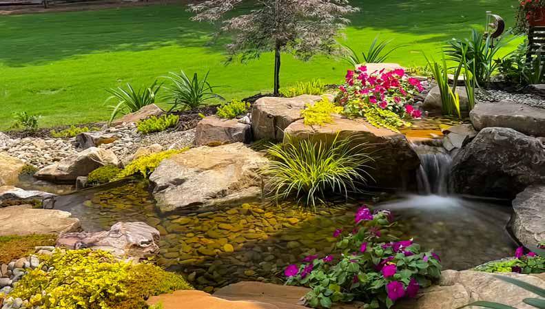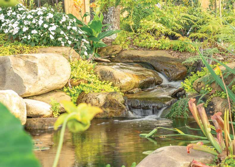 It is August in Aiken, so the temperatures are off the charts. It is hard to imagine that fall is lurking around the corner. Its more moderate climate will bring a welcome relief and, for many, the call of the outdoors. Now is the time to consider transforming your yard into an outdoor retreat to enjoy with family and friends. Amen Corner Ponds builds custom ponds and water features that can transition a ho-hum yard into a peaceful and relaxing oasis. The following pages contain just a few examples of their amazing work. Take a peek and envision coming home after a long day to cooler temps, the sound of moving water and your own little slice of outdoor paradise. It can be just around the corner.