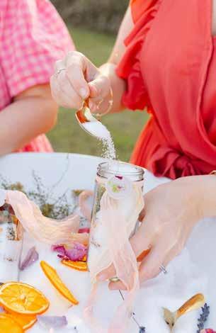 The next station is a Bath Salt Bar, where guests can choose from a variety of pure essential oils to create aromatherapy-infused custom bath salts with dried flowers and gourmet salts.
