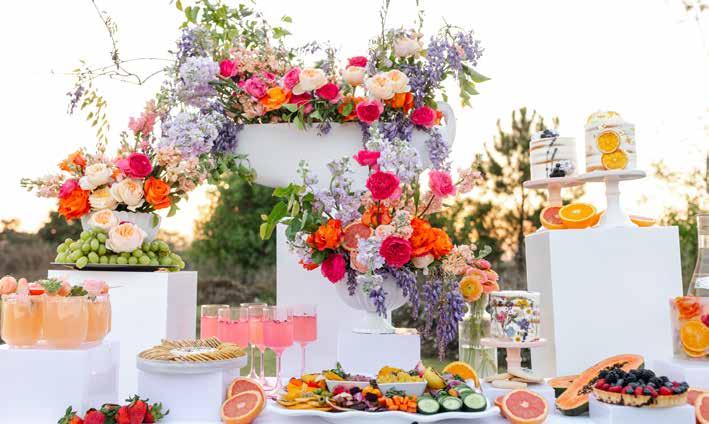 Guests can create their unique mini floral arrangements from a gorgeous display of spring blooms, including ranunculus, peonies, garden roses, eucalyptus and delphinium.