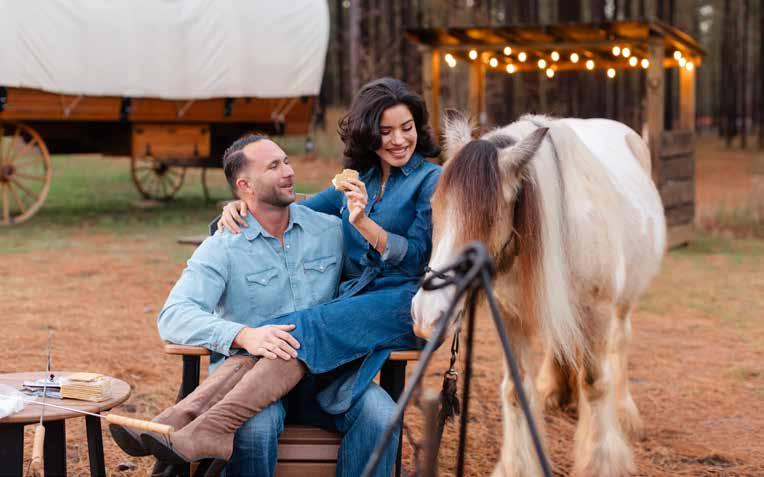 Down South Gypsy Glamping isn’t about adding more wagons or growing bigger. Its future lies in deepening the experience through curated moments like photography, candlelit barn dinners and carriage rides that honor the horses’ heritage. At its core, it remains a place to breathe, reconnect and rediscover the beauty of slowing down, one unforgettable stay at a time. Guests often say they arrive curious but leave changed, carrying the calm of the farm back into their everyday routines. It is not uncommon for visitors to begin planning a return stay before they even leave the driveway. That lingering feeling of peace, wonder and connection is the true souvenir of Down South Gypsy Glamping and the reason so many guests continue to share its story with friends everywhere.