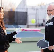 group. They play together regularly and spend time together off the court, turning matches into meaningful friendships. Whether they’re playing as partners or competing against each other, the game taps into their fun, competitive nature. Cindy jokes that she’s at her most competitive when she and Paco face off against another couple.