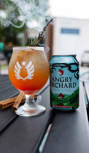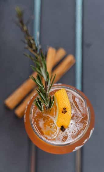 Step 1. Pour the first three ingredients over ice in a Pilsner glass. Top with hard apple cider. Garnish with rosemary sprig and cloves. (Bonus points for torching the rosemary upon serving!)