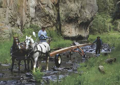 In the summer of 2006, Joe and Merel Hancock and their mustang team helped build foot bridges in the Jemez by hauling in the supplies by forecart at the Los Conchas trailhead. The Jemez River and other areas of New Mexico forests are very wild and you can’t take motorized vehicles.