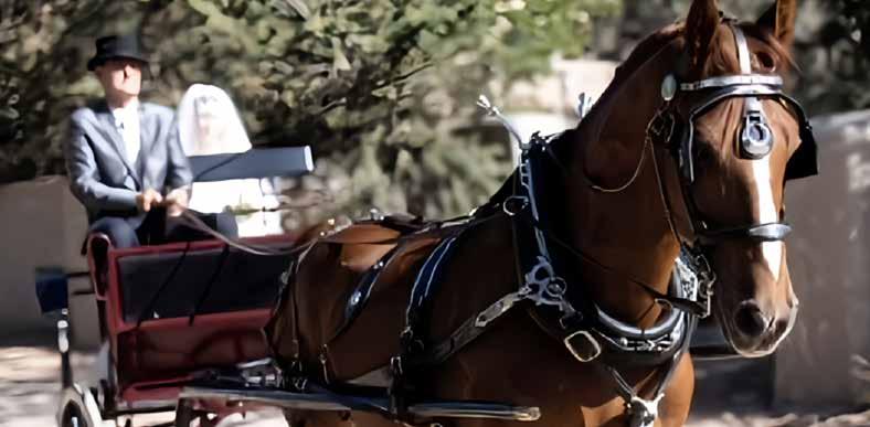 Joe and Merel are working with a new team of horses; a Morgan named Luna and a Dutch Harness named Hank. “We will continue our carriage/ forecart business and look forward to making many more happy adventures for us and the people who love horses.” wagonshohorseadventures.nm