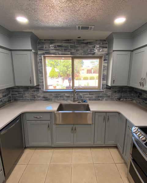 client through their remodel’s completion, as is the whole team. “I want to make sure the project is fulfilled and they’re happy with what the Sandia Marble team has accomplished.”