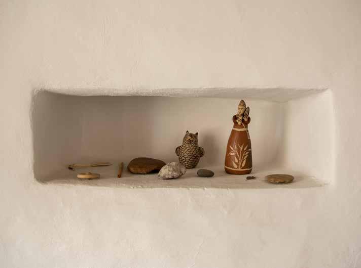 O’Keeffe came to Northern New Mexico in the late 1920s, drawn by its vastness and solitude—what she called “the Faraway.” While in the Taos area, she searched for new landscapes to paint. “She would take her Model A Ford out looking for a good place to set up,” Renzoni explains. Friends soon encouraged her to visit Abiquiú and Ghost Ranch. When O’Keeffe first saw the Abiquiú property in 1935, it was vacant and in disrepair. Yet one detail captivated her. “That wall with a door in it was something I had to have,” she is said to have recalled. “The house itself held close to two centuries of history before O’Keeffe made it her own,” Renzoni says. The Adobe Hacienda’s earliest rooms date to the 1740s, first used as a shepherd’s hut before becoming a residential compound.