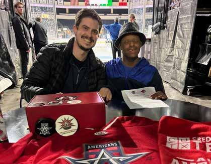 Recently, the Allen Americans Hockey Team sponsored Eli through the 2023 Allen Eagle “Adopt a Senior” program. Eli was chosen as Player for the Day. In participating, he signed a contract, received an autographed game jersey, and watched the team practice. “Eli’s hard work, determination, and strength make him the perfect teammate,” says Ana Gonzalez, VP of Social Impact. “We’re honored to have him on our squad!”