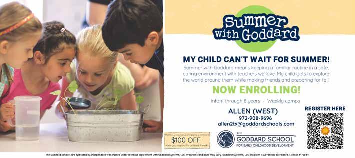 COMING SOON Mayweather Boxing + Fitness Allen offers an authentic experience for those who want to learn from Floyd’s techniques and training regimens, while getting in the best shape of their lives in a high-intensity group fitness setting Mayweather Allen 190 E Stacy Road, Suite 1510 Allen, TX 75069 (469) 768-3621 allentxsm@mayweather.fit Inspiration for your best local life. Exclusive giveaways. Hidden gem alert! Good news in your neighborhood. Local content by local creators. Inside scoop on all things local. Locally-inspired food & drink recipes. ALLEN CITY LIFESTYLE™ STAY CONNECTED TO YOUR COMMUNITY SCAN TO FOLLOW US ON INSTAGRAM 51 | CITYLIFESTYLE.COM/ALLENTX JUNE 2023
