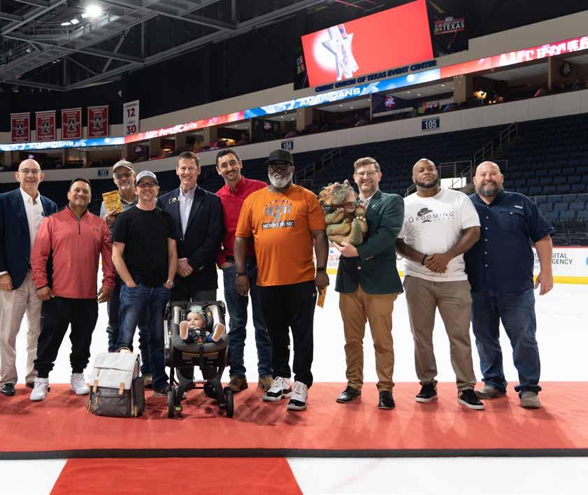 On Wednesday, April 12, the Allen Americans took on the Kansas City Mavericks at Credit Union of Texas Event Center. Allen City Lifestyle hosted our gentlemen advertising partners and leaders from our community in a suite and enjoyed a time of fun, laughter, and great conversations about the influential men in our lives. The guys also gathered on the ice for a photo following the game.