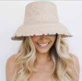 The Roselia palm bucket hat features a raffia straw body with a multi-colored woven trim. At Avalon. $129. EverythingButWater.com
