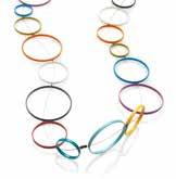 Artist Donna D'Aquino's hand fabricated art jewelry is based on simplicity of design and elegance. This statement necklace is comprised of various size circle components powder coated in 10 colors. $225. Best Dressed Boutique. TheBestDressedBoutique.com