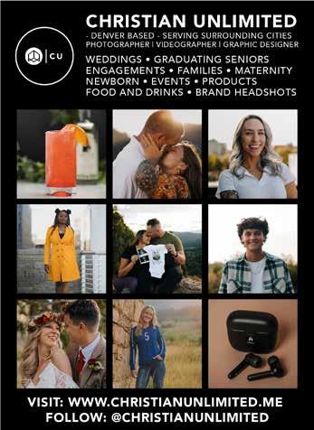 Elevate Your Event with M&M Photo Booth! Book now and enjoy a FREE ADD ON OR $100 OFF your Upgraded Photo Booth Package. Our Photo Booth Rentals guarantee unforgettable moments at weddings, birthdays, graduations, and beyond. We offer unique entertainment for your guests, interactive fun and endless memories with unlimited digital images included in every package. Follow Us on Instagram @mmphotoboothco (720) 453-0063 | mmphotoboothco@gmail.com | mmphotoboothco.com Serving the Denver Metro Area birdsongcollectiveartgallery.com 720.969.5761 | VB 7878 W 80th Pl, Ste 2c-2d, Arvada, CO Jason Birdsong & Victoria Brown Artists and owners We are a force. 20% OFF FRAMING, MATTING AND PRINTING SERVICES FOR FIRST TIME CUSTOMERS. The Birdsong Collective Art Gallery, is the newest fine art gallery in the greater Denver area and the second of only two art galleries in Arvada. We opened the doors Sept. 14, 2023 and with nearly 35 artists already on the walls, we also offer custom framing, fine art printing and matting. Art is something that everyone can connect to, so please visit us today! 23 | CITYLIFESTYLE.COM/ARVADA MAY 2024