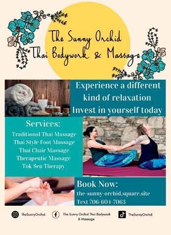 Need to board your dog? We’ve got you covered! GA Ag Certified Climate Controlled Large Runs to Stay Large Pastures to Run Pick Up/Drop Off BOARDING www.qk9c.com 706-739-7592 B Quality K9 Concepts V @ak9c Serving Augusta, Ga and the CSRA for 20 years CONTACT Biggerand Saltier to better serve You! Stay tuned as we grow www solcaveandspa com • Exterior Detail • Interior Detail • Carpet/Seat Shampooing • Paint Enhancement • Water Spot Removal • Pet Hair Removal • 100% Mobile • AND MORE CALL OR TEXT (706) 300-5256 MOBILE DETAILING BY ALEX 29 | CITYLIFESTYLE.COM/AUGUSTA JUNE 2023