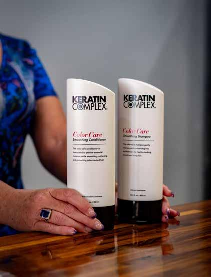The salon uses the Keratin Complex color line and smoothing treatments. With a national educator for Keratin Complex on staff, everyone keeps up to date with information and training. “We continually avail ourselves to training opportunities,” adds Karen. “We are always keeping up with the latest trends and the latest best practices in the hair industry.” In addition to color treatments, salon services include bridal/special occasion styling, waxing, perms, various types of hair extensions, and more.