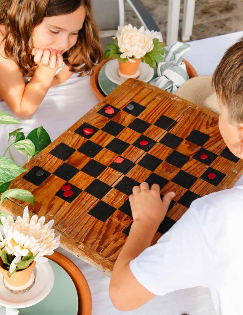 2. Game Board: For raw wood (such as our Tic-Tac-Toe board), use a ruler and black paint marker to create board lines. For reclaimed or treated wood, use paint. Let game pieces and game boards fully dry. Seal with a polycrylic spray for protection from heat and moisture.