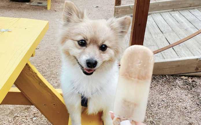 bottle and a variety of local craft beers, including a K9 Lager from Texas Beer Co. that gives back to K9s For Warriors. The MUTTS® Austin grill features snacks like fried pickles, edamame hummus and crinkle fries as well as chicken sandwiches, chicken tenders, breakfast tacos and more. The menu for canine customers includes PUPsicles (frozen peanut butter and beef broth served on edible ‘sticks’) and the Doggie Dog, a bite size 100 percent beef frank.