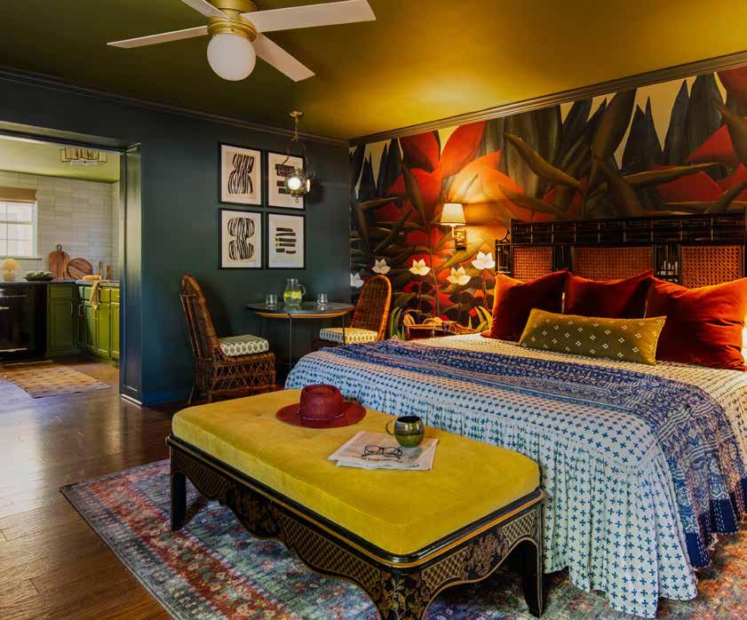 Whether in the expansive 3-bedroom mansion or one of two more intimate attic suites, each of the 11 units features fully outfitted kitchenettes, TVs, mini-fridges, complimentary mini bars stocked with Texas-sourced snacks, welcome beverages, hightouch amenities and signature robes to use during your stay.