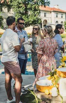 1: Made In Cookware launched an Outdoor Dining Collection, also available in Harbour Blue and Stone Grey 2: The Marigold Yellow collection pays homage to the pool at the Commodore Perry Estate 3: Guests at the launch party experience CPE's new menu items served on Made In Cookware 4: Lizy Levy leaves the Round Top Film Festival announcement party with a swag bag 5: Shanna and Skylar Schanen, the mother/ daughter duo behind the creation of the Round Top Film Festival. 6: Guests at the Round Top Film Festival pool party at Commodore Perry Estate 7: Brendon Rooney, Christy Carlson Romano, Shonnery Pettit and Katerina Cotroneo at the RTFF event at CPE