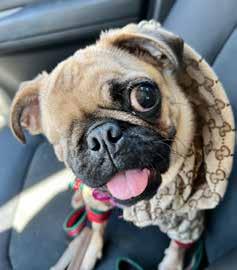 2. MISS PRISCILLA PUGSLEY was rescued by Dani Dudek of SpilltheATX from Save an Angel New Year’s Day 2023. Dani tells us, “On Christmas in 2022 I decided I was lonely and needed to add to my fur family (I already had a 12-year-old tabby cat). On the rare occasion I would look at available rescues on Petfinder I would only search