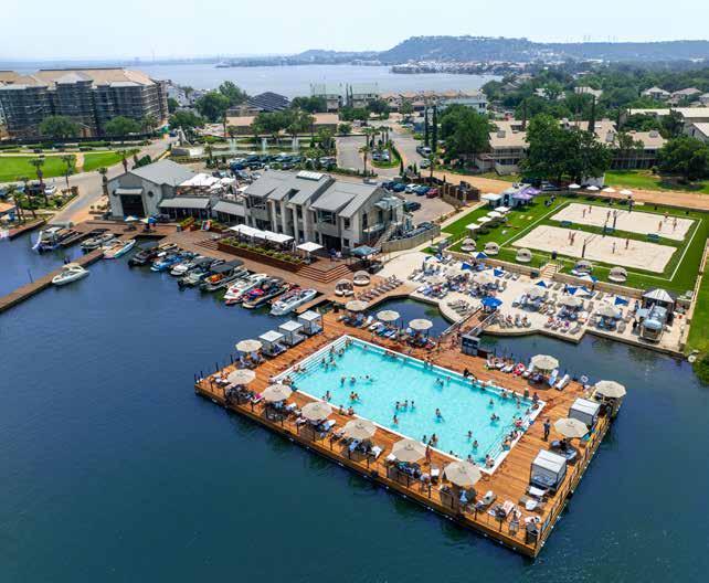 For those who rather relax, there’s a spa with a sauna, resistance pool and menu of services and they recently debuted the only Floating Pool in North America. The pool floats on the edge of Lake LBJ and has a neighboring sandy beach where guests can get cocktails and light bites from The Shack, Sand Bar, and H2O Bar. Kids and thrill-seeking adults will like the Splash Safari Aqua Park with a floating obstacle course, climbing walls, slides, balance beams and more.
