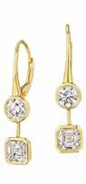 These 14K yellow gold earrings are edgy yet classic. They feature a round bezel-set diamond that gracefully suspends a bezel set drop of emerald-cut brilliance. They move beautifully with every turn and offer a modern take that is timeless.