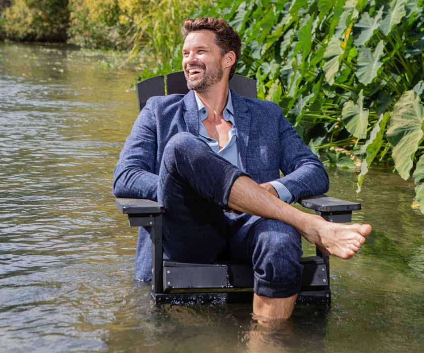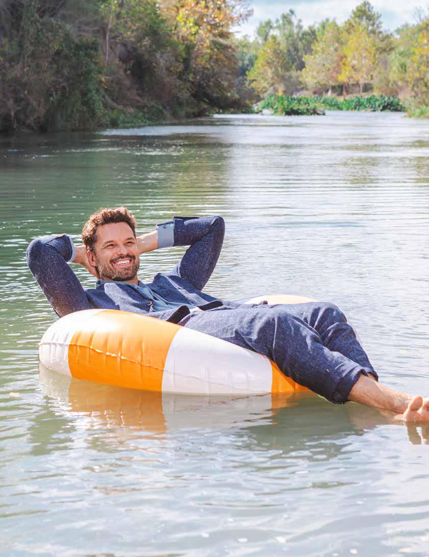 The full interview is well worth the read, and I loved this shoot—styled by Estilo Boutique owner Stephanie Coultress O’Neill, who dressed Austin in a beautiful suit, and only cringed a little when I suggested he wear it while floating the river for our cover shot.