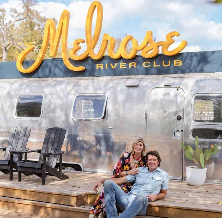 Melrose River Club is a gem built alongside the San Marcos River. There are 12 casitas and 30 cabins on the 12 acres, as well as a resort-style pool and bar, a boho-chic lobby with a champagne vending machine, and breakfast burritos and mimosas available in the mornings. There’s a dining pavilion perfect for big feasts or intimate gatherings, chairs set on the riverbanks great for slow mornings with coffee or enjoying the sunset, and fire pits scattered around the property begging for s’mores and deep conversations. But, the heart and the soul of Melrose River Club, which is adults-only (16 and older), are the couple who own it, Max and Melodie Schleder. Max and Melodie have been married for 25 years. They have two grown boys and prior to taking the hotel on full-time Melodie was in graphic design at Mckinsey Co. before starting her own interior design business, Primitive Modern Design, after their house was featured on HGTV’s “Small Space, Big Style.” Max was (and still is) in real estate development.