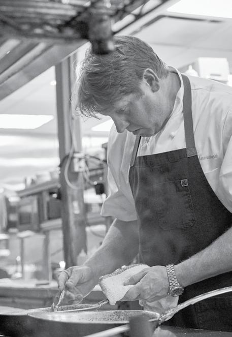 apartment, which didn’t have a commercial kitchen. “So Bob brought me into his weight room, and I wasn’t sure it would work - we gotta move everything and bring in tables, hot boxes, staff - then he offered his bedroom. I chose the weight room,” laughs Stephen. They pulled it off. “We stuffed the vents in the room so that there was no cold air, we’re plating 140 dishes…..” Stephen trails off. “I love that feeling.”