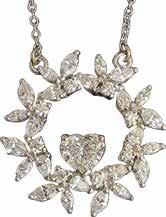 Heart in wreath diamond pendant: center 0.9ct E/SI1 diamond with GIA cert, rest of diamond weight 1.53. 18K white gold (available on request with ruby heart center in place of diamond)