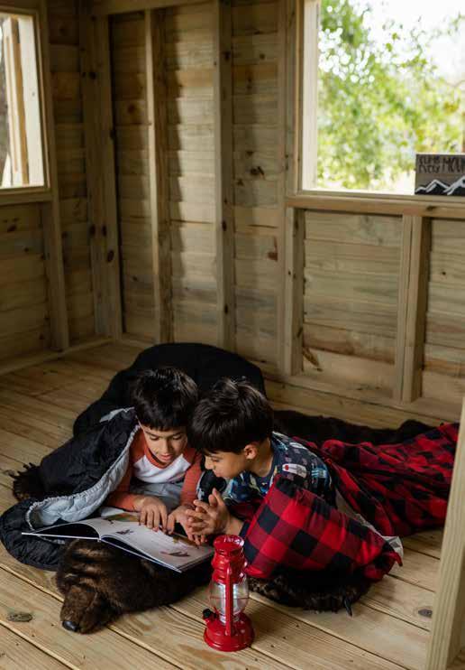 Treeforts are great for every age, she reminds. "If you build one big enough, and your kids are going crazy inside, send them outside to the treefort. Or, take your girlfriends outside to hang out in the treefort for happy hour or to play Mahjongg."