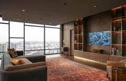 Designed as a counterpoint to the openness of the main living area, the lounge is a cocoon, both peaceful, layered, and deeply versatile. It’s a place for reading, movie nights and slow mornings. Rich tones and varied textures do the heavy lifting here, creating depth without heaviness. Soft lighting and custom upholstery make the room feel both intentional and effortless.