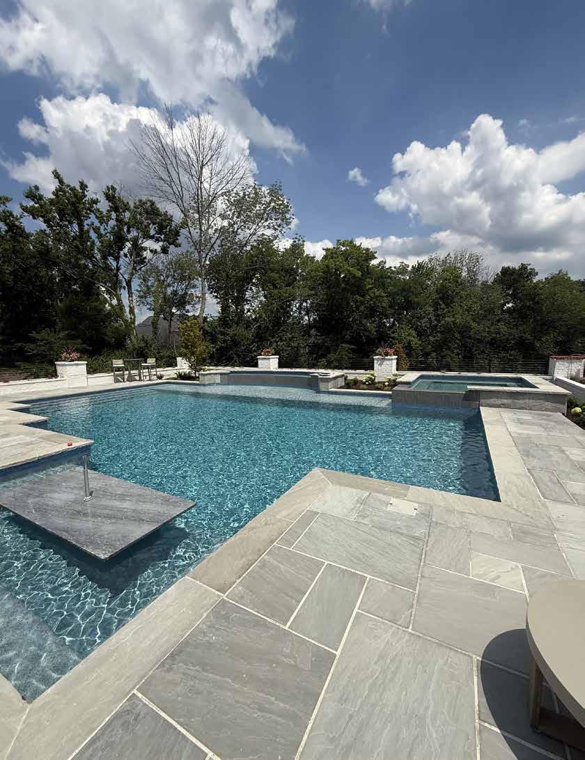 One recent project involved incorporating landscaping into a client’s pool project by using built-in brick planters throughout the pool and outdoor kitchen areas to create a more cohesive look.