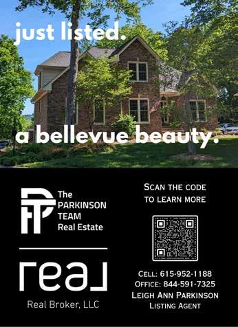 Baker Bookkeeps goes beyond the norm in the accounting world. We deliver personalized service and impeccable reporting - helping you make financially-based decisions for your company PROUD BELLEVUE RESIDENT AND BUSINESS OWNER www.bakerbookkeeps.com JOY BAKER QuickBooks Online Certified OWNER Thank you Bellevue for a fun Spring 2023 baseball and softball season! 615.375.6489 | bsaainc.org 621 McPherson Dr 11 | CITYLIFESTYLE.COM/BELLEVUETN JUNE 2023