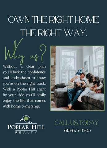 Find Compassion, Care & Respect at Harmony PEACE OF MIND, THAT’S THE VALUE OF HARMONY. INDEPENDENT LIVING | ASSISTED LIVING | MEMORY CARE Call 615.649.5023 to schedule a tour. HarmonyatBellevue.com S can toLearn More Inf o HARPETH VALLEY ANIMAL HOSPITAL such as (615) 673-0100 8252 Collins Road Nashville, TN | hvanimalhospital.com We are a full service small animal hospital offering a complete array of services such as routine well visits, surgery, diagnostics, and dentals. 606.622.9818 | office #: 615.267.3922 www.srobinsonrealestate.com | V: @samrobre srobinson@williamwilsonhomes.com 5560 Franklin Pike Circle Brentwood, TN 37027 LET US HELP YOU NEXT SERVICES INCLUDE: FREE CONSULTATION ABOUT LISTING YOUR HOME PROVIDE FREE ESTIMATES TO SEE HOW MUCH YOUR HOME IS WORTH PROVIDE ASSISTANCE IN FINDING A NEW HOME OR SECONDARY HOME PROVIDE ASSISTANCE IN FINDING INVESTMENT PROPERTIES CAN PROVIDE ASSISTANCE BUILDING A REAL ESTATE PLAN SHORT-TERM AND OR LONG-TERM 16