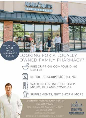 inside the issue JUNE 2023 ON THE COVER DEPARTMENTS 6 Lifestyle Letter 10 City Scene 12 Business Monthly 14 Open House LIFE + CULTURE 18 Artist’s Palette ARTS + CULTURE 24 Hot Spot FOOD + BEVERAGE 30 Locals Only LIFE + CULTURE 33 Realty Report REAL ESTATE 34 Gift Guide ENTERTAINMENT 38 Events FEATURED 14 Pharmacy With Flair Joshua Brown Family Pharmacy goes extra mile to personalize the pharmacy experience 18 Bringing Art To The Community Local artists discuss the power of art and why it’s important in today’s world 24 Luckey You Upscale dining returns to Bellevue with Luckey Hospitality’s Fortuna Italian Steakhouse Photography: Alysse Gafkjen Bellevue is the home base for some of Middle Tennessee’s most creative spirits, including this month’s cover subject, singer-songwriter Gabe Dixon. AlysseGafkjen.com 14 24 18 8