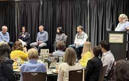 15: Tuesday, May 9, 2023, BizQuest guests received the playful takeaway game Barrel of Monkeys. 16: Together, the panelists provided a thoughtful discussion on teamwork, culture, risk, change, and social responsibility. 17: Educational activities were part of the fun at KidsQuest Children’s Museum’s BizQuest breakfast fundraiser.