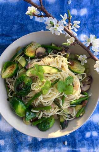 Vegan Pasta Primavera with Braised Brussel Sprouts