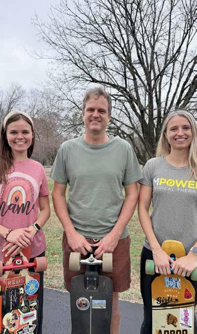 He and his daughters Mary and Anna, who were 13 and 15 at the time, all bought skateboards and regularly visited the greenway to practice, and their love of skateboarding grew from there. Albright, who homeschooled his daughters from the time their family moved to town until they graduated high school, started bringing their friends to board with them after attending their weekly homeschool group. This eventually led to the founding of Greenway Surfers, a weekly meet-up for anyone wanting to take to Bellevue’s section of the greenway on some form of wheels. They’ve been meeting for a weekly 12-mile ride every Monday evening from March through October since 2013. While the group is mainly comprised of longboarders, they also invite people who rollerblade or bike. Their current group of regulars ranges from 20-somethings to 60-year-olds,