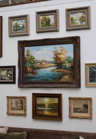 “All of the photos are landscapes and river photography, Monteagle photos, pastels, oil paintings,” Brittany says. Every piece came from somewhere local. “Everything is significant to us. All my Sewanee pieces came from Monteagle. I like to hunt, dig, and find.”