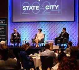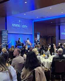 BDA’s Annual State of the City 8: Guests enjoying breakfast, eager for updates on the City’s Comprehensive Plan. 9: Bellevue Mayor Robinson and Bellevue Deputy Mayor Malakoutian discuss unlocking more of Bellevue’s potential. 10: Bellevue Deputy Mayor, Mo Malakoutian, engaging in conversation with a community member. 11: Leaders from Bellevue community networking before the State of the City event on June 25th. 12: Bellevue Mayor Lynne Robinson updates the community on improving multi-modal transportation and safety progress. 13: Bellevue Mayor Robinson and Bellevue Deputy Mayor Malakoutian discuss city updates with BDA President Patrick Bannon. 14: Thank you to our series partners Amazon, Heritage Bank, Kaiser Permanente, and Sterling Realty Organization.