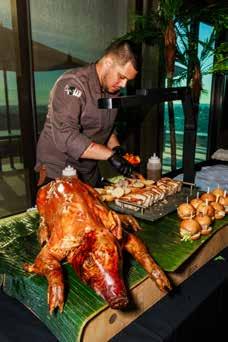 Ascend Prime Steak & Sushi 6th Anniversary Celebration 15: Guests chose from two photo booth backdrops and pose with Iger, the Burmese Mountain Dog. 16: An ode to Ascend’s sixth anniversary, the party featured a life-size yearbook and superlatives featuring and celebrating the team. 17: Top 40s hits band, SWAY, performed everyone’s favorite songs in the dining room. 18: A wide variety of imaginative desserts were paired next to a 9-hole mini golf course. 19: A whole roasted pig on display at one of the event’s six culinary stations. 20: The DIY Tiki Bar encouraged guests to build their own drinks with an assist from Ascend’s mixologists. 21: Bellevue Family 4th fireworks show was spectacular at eye-level for Ascend’s guests.